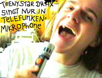 Teenystar Drax sings into Telefunken mikes ONLY.